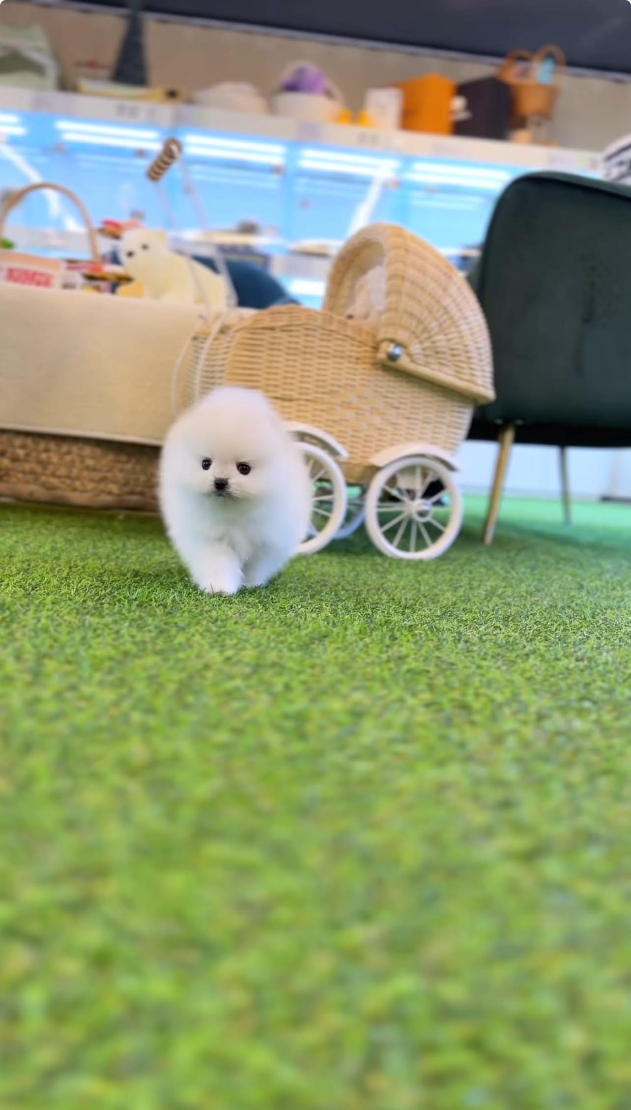 This lil girl will make an excellent. She is raised with other dogs. She is a purebred female Pomeranian. She is small, fluffy, and a pleasure to have around the house. She’s quite sociable and curious so she will probably be everywhere